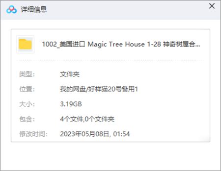 本资源为哈佛妈妈图书包-《神奇树屋合辑(1-28)》音频完结版+电子书合集[MP3]百度云网盘下载,本次资源格式为MP3,做压缩包处理,避免资源丢失,不要直接在网盘解压,请先保存下载再解压便可播放。