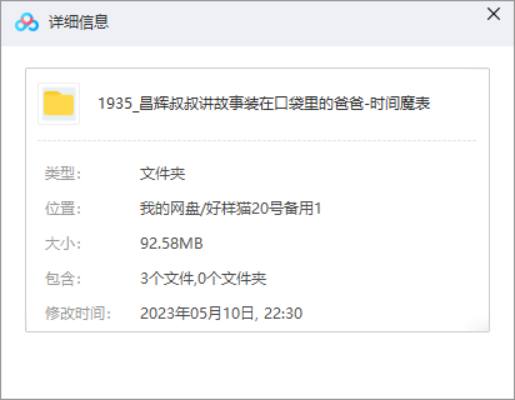 本资源为昌辉叔叔讲故事-《装在口袋里的爸爸:时间魔表》完结版音频[M4A]百度云网盘下载,本次资源格式为M4A,做压缩包处理,避免资源丢失,不要直接在网盘解压,请先保存下载再解压便可播放。