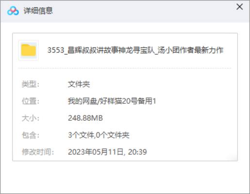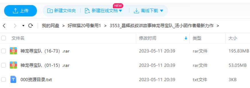 本资源为昌辉叔叔倾力演播-《神龙寻宝队》全73讲音频合集[M4A]百度云网盘下载,本次资源格式为M4A,做压缩包处理,避免资源丢失,不要直接在网盘解压,请先保存下载再解压便可播放。