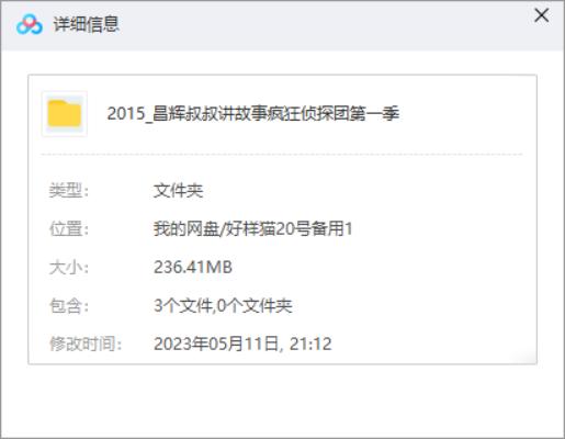 本资源为昌辉叔叔讲故事-《疯狂侦探团》第一季全35讲音频合集[M4A]百度云网盘下载,本次资源格式为M4A,做压缩包处理,避免资源丢失,不要直接在网盘解压,请先保存下载再解压便可播放。