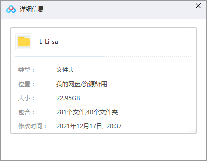 本资源为日本女歌手(LiSA)织部里沙专辑所有歌曲合集-精选38张专辑(2010-2019)无损音乐打包[FLAC/22.59GB]百度云网盘下载,一共包含283首歌去,歌曲格式为FLAC,按专辑做压缩包处理,为避免资源丢失,不要在线解压,请先保存在下载解压便可播放试听。