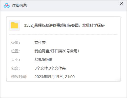 本资源为昌辉叔叔讲故事-《超能侠客团:北极科学探秘》全集音频[M4A]百度云网盘下载,本次资源格式为M4A,做压缩包处理,避免资源丢失,不要直接在网盘解压,请先保存下载再解压便可播放。