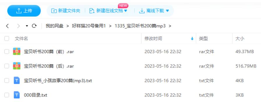 本资源为故事童话-《宝贝听书》全200篇音频合集[MP3]百度云网盘下载,本次资源格式为MP3,做压缩包处理,避免资源丢失,不要直接在网盘解压,请先保存下载再解压便可播放。