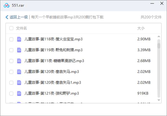 本资源为《每天一个早教睡前故事》全200篇音频故事合集[MP3]百度云网盘下载,本次资源格式为MP3,做压缩包处理,避免资源丢失,不要直接在网盘解压,请先保存下载再解压便可播放。