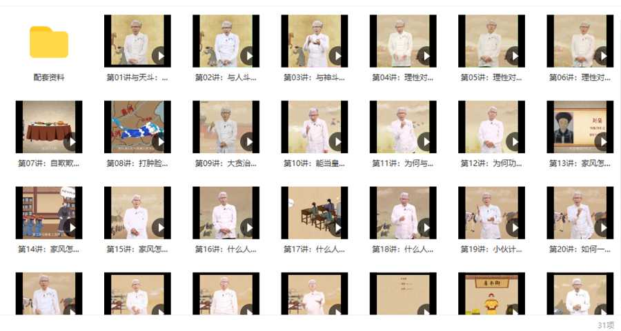 本资源为《纪连海:给青少年讲清朝十大人物》视频课30集+课件10集[MP4/PDF]百度云网盘下载,本次资源格式为MP4/PDF,做压缩包处理,避免资源丢失,不要直接在网盘解压,请先保存下载再解压便可播放。
