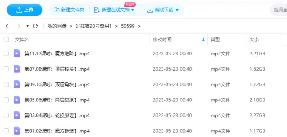 本资源为《周爷爷魔方课》全12课时视频合集[MP4]百度云网盘下载,本次资源格式为MP4,做压缩包处理,避免资源丢失,不要直接在网盘解压,请先保存下载再解压便可播放。