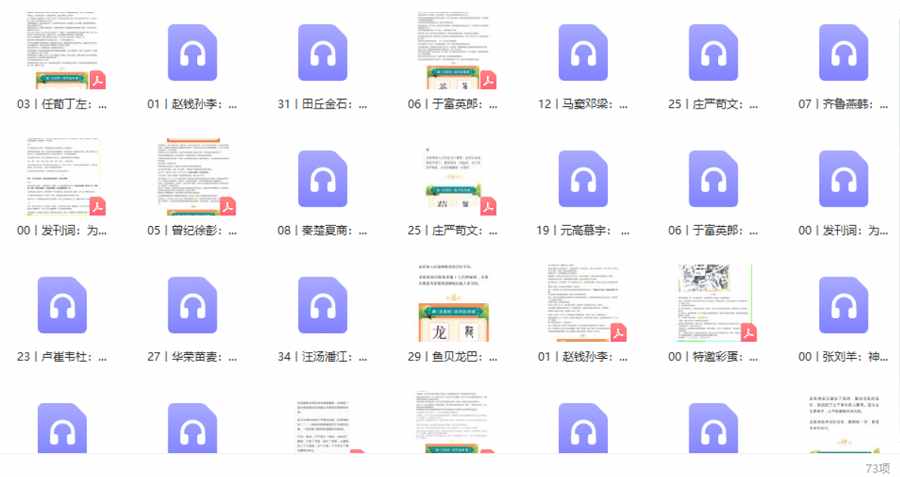 本资源为小学1~6年级国学修习-《新《百家姓》国学故事课》音频+课件合集[MP3/PDF]百度云网盘下载,本次资源格式为MP3/PDF,做压缩包处理,避免资源丢失,不要直接在网盘解压,请先保存下载再解压便可播放。