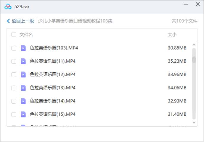本资源为英语学习-少儿小学英语乐园口语全103集视频课[MP3]百度云网盘下载,本次资源格式为MP3,做压缩包处理,避免资源丢失,不要直接在网盘解压,请先保存下载再解压便可播放。