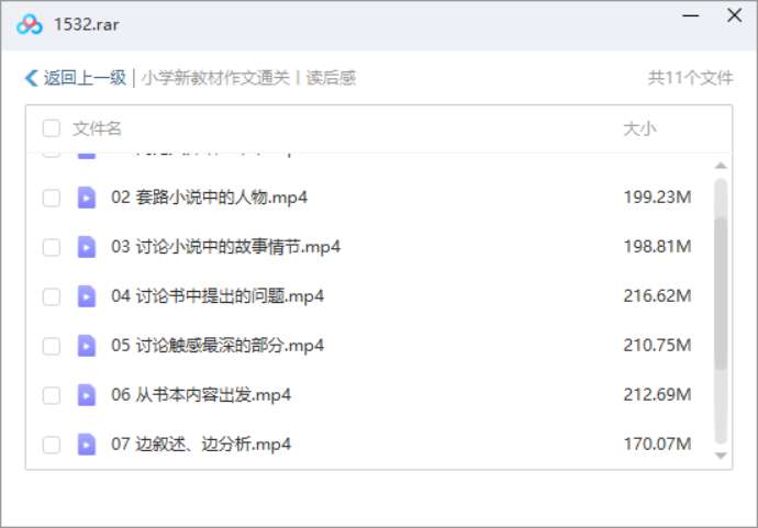本资源为《小学新教材作文通关|读后感》全10节视频课合集[MP4]百度云网盘下载,本次资源格式为MP4,做压缩包处理,避免资源丢失,不要直接在网盘解压,请先保存下载再解压便可播放。