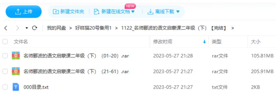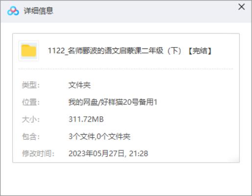 本资源为《名师郦波的语文启蒙课二年级(下)》全61讲音频合集[MP3]百度云网盘下载,本次资源格式为MP3,做压缩包处理,避免资源丢失,不要直接在网盘解压,请先保存下载再解压便可播放。