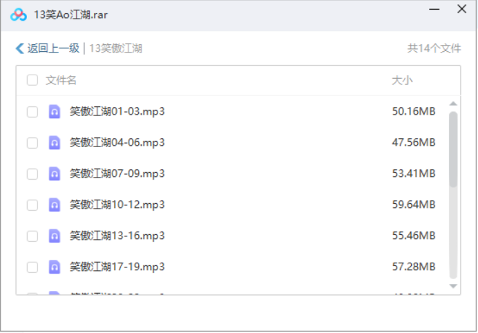 本资源为金庸长篇武侠小说《笑傲江湖》有声书音频合集[MP3]百度云网盘下载,有声小说格式为MP3,资源做压缩包处理,为避免资源丢失,不要在线解压,请先保存在下载解压便可播放试听。