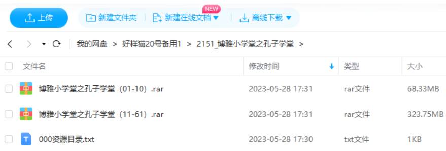 本资源为《博雅小学堂之孔子学堂》全61讲音频合集[MP3]百度云网盘下载,本次资源格式为MP3,做压缩包处理,避免资源丢失,不要直接在网盘解压,请先保存下载再解压便可播放。