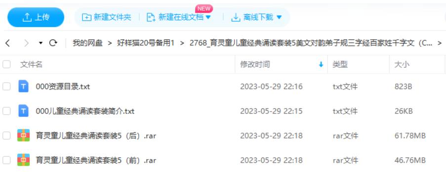 资源名称:育灵童儿童经典诵读套装5美文对韵弟子规三字经百家姓千字文(CD23-27)