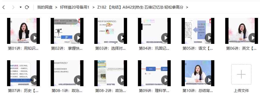 本资源为刘热生《五维记忆法》全10讲视频课合集[MP4]百度云网盘下载,本次资源格式为MP4,做压缩包处理,避免资源丢失,不要直接在网盘解压,请先保存下载再解压便可播放。