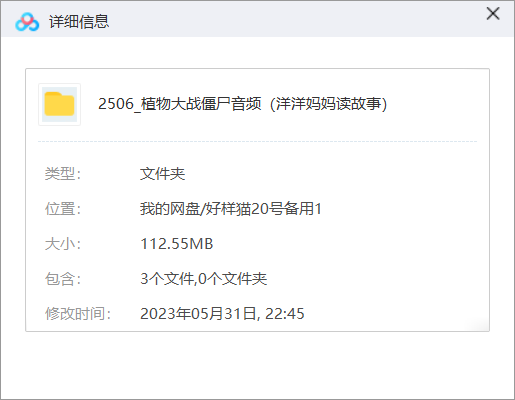 本资源为《洋洋妈妈读故事-植物大战僵尸》全12篇音频合集[MP3]百度云网盘下载,本次资源格式为MP3,做压缩包处理,避免资源丢失,不要直接在网盘解压,请先保存下载再解压便可播放。
