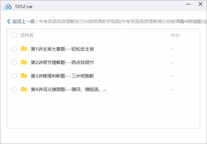 本资源为《中考英语阅读理解技巧训练》完结版视频课合集[MP4]百度云网盘下载,本次资源格式为MP4,做压缩包处理,避免资源丢失,不要直接在网盘解压,请先保存下载再解压便可播放。