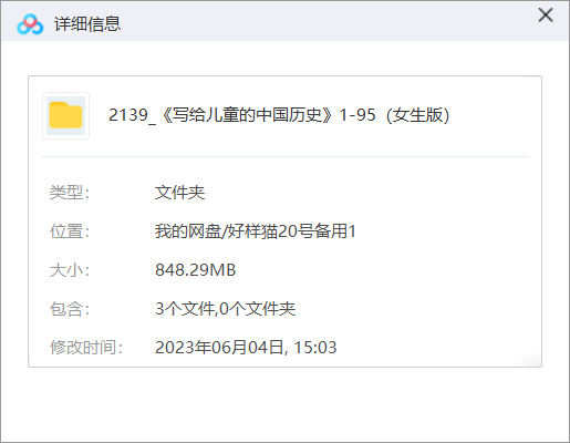 本资源为《写给儿童的中国历史》女生版全95讲音频合集[MP3]百度云网盘下载,本次资源格式为MP3,做压缩包处理,避免资源丢失,不要直接在网盘解压,请先保存下载再解压便可播放。