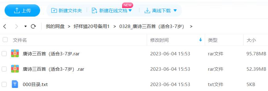 本资源为《唐诗三百首(适合3-7岁)》完结版音频合集[MP3]百度云网盘下载,本次资源格式为MP3,做压缩包处理,避免资源丢失,不要直接在网盘解压,请先保存下载再解压便可播放。