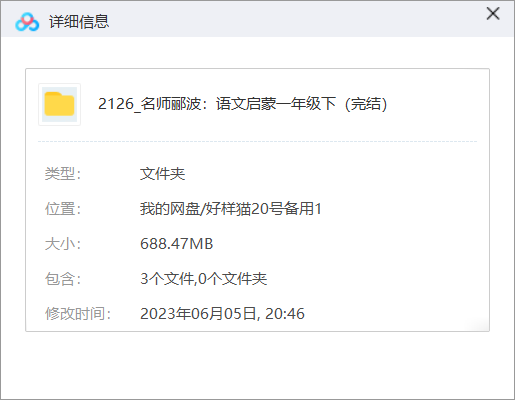 本资源为《名师郦波:语文启蒙一年级(下)》全40讲音频合集[MP3]百度云网盘下载,本次资源格式为MP3,做压缩包处理,避免资源丢失,不要直接在网盘解压,请先保存下载再解压便可播放。