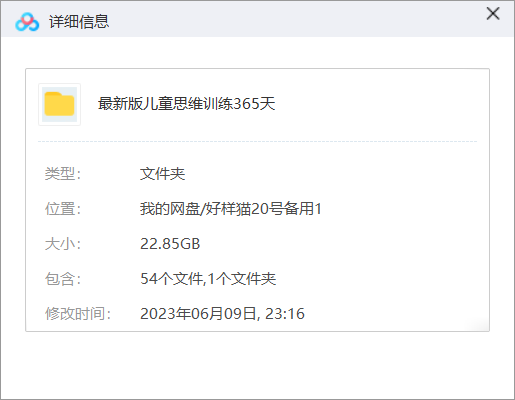 本资源为《儿童思维训练365天》全50讲视频课合集[MP4]百度云网盘下载,本次资源格式为MP4,做压缩包处理,避免资源丢失,不要直接在网盘解压,请先保存下载再解压便可播放。