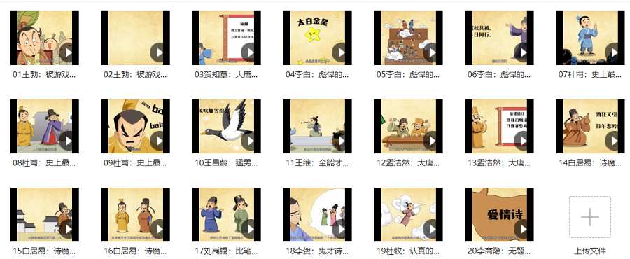 本资源为《爆笑唐诗之十大杰出诗人》全20集完结视频打包[MP4]百度云网盘下载,本次资源格式为MP4,做压缩包处理,避免资源丢失,不要直接在网盘解压,请先保存下载再解压便可播放。