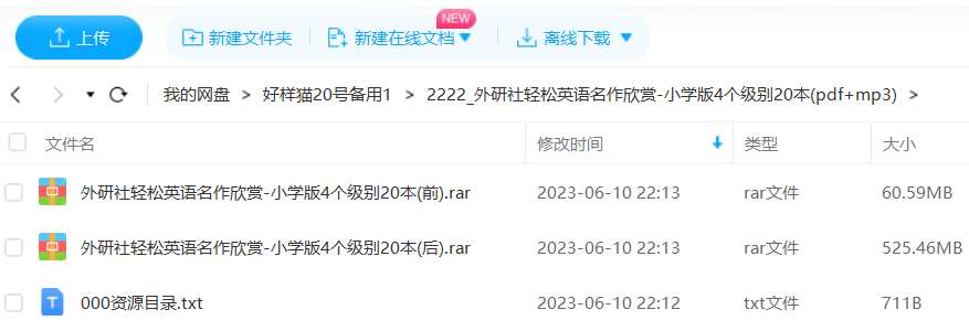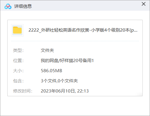 本资源为《外研社轻松英语名作欣赏-小学版4个级别20本》全集音频[MP3]百度云网盘下载,本次资源格式为MP3,做压缩包处理,避免资源丢失,不要直接在网盘解压,请先保存下载再解压便可播放。
