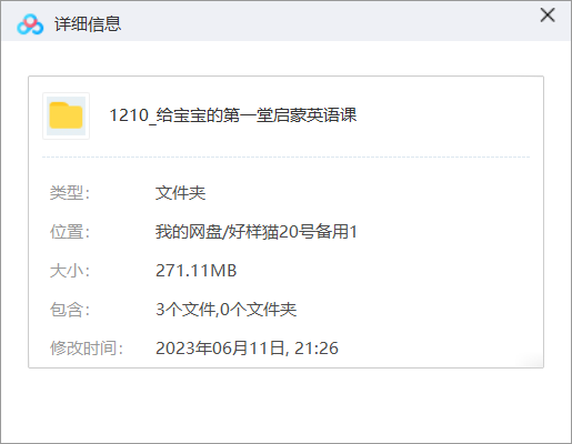 本资源为《给宝宝的第一堂启蒙英语课》全132讲音频合集[MP3]百度云网盘下载,本次资源格式为MP3,做压缩包处理,避免资源丢失,不要直接在网盘解压,请先保存下载再解压便可播放。