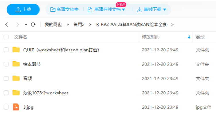 本资源为《Raz-Kids》全套绘本资料有声读物音频+文档打包合集[PDF/MP3]百度云网盘下载,本次资源格式为MP3+PDF,资源做压缩包处理,为避免资源丢失,不要在线解压,请先保存在下载解压便可播放试听。