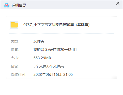 本资源为《小学文言文阅读详解(基础篇)》全50讲音频合集[MP3]百度云网盘下载,本次资源格式为MP3,做压缩包处理,避免资源丢失,不要直接在网盘解压,请先保存下载再解压便可播放。