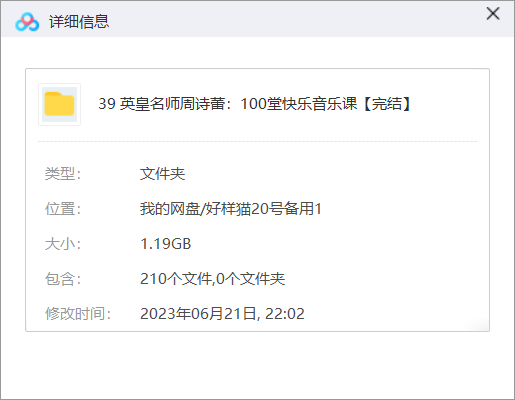 本资源为《英皇名师周诗蕾-100堂快乐音乐课》全210讲音频[M4A]百度云网盘下载,本次资源格式为M4A,做压缩包处理,避免资源丢失,不要直接在网盘解压,请先保存下载再解压便可播放。