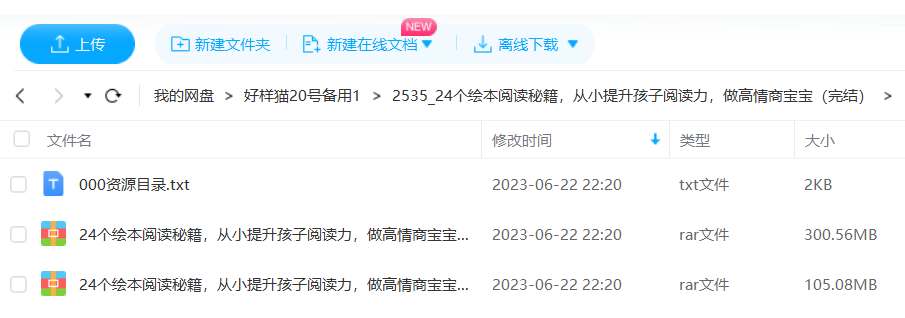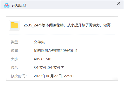 本资源为《24个绘本阅读秘籍,从小提升孩子阅读力》完结版合集[MP3/PDF]百度云网盘下载,本次资源格式为MP3/PDF,做压缩包处理,避免资源丢失,不要直接在网盘解压,请先保存下载再解压便可播放。
