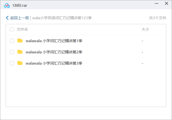 本资源为《Walawala小学英语词汇巧记精讲》1-3季视频课[MP4]百度云网盘下载,本次资源格式为MP4,做压缩包处理,避免资源丢失,不要直接在网盘解压,请先保存下载再解压便可播放。