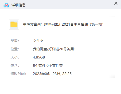 本资源为《中考文言词汇趣味积累班2021春季直播课(第一期)》视频课[MP4]百度云网盘下载,本次资源格式为MP4,做压缩包处理,避免资源丢失,不要直接在网盘解压,请先保存下载再解压便可播放。