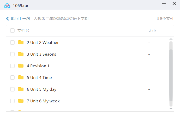 资源名称:人教SL版新起点小学二年级英语(下)