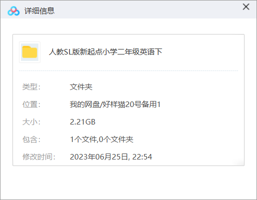本资源为《人教SL版新起点小学二年级英语(下)》视频课全20集[MP4]百度云网盘下载,本次资源格式为MP4,做压缩包处理,避免资源丢失,不要直接在网盘解压,请先保存下载再解压便可播放。
