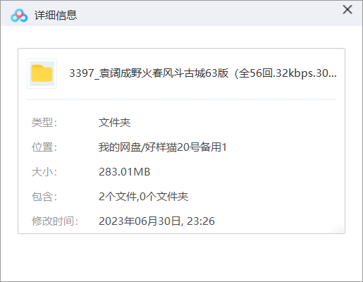 本资源为《袁阔成评书野火春风斗古城63版》全56回音频合集[MP3]百度云网盘下载,本次资源格式为MP3,做压缩包处理,避免资源丢失,不要直接在网盘解压,请先保存下载再解压便可播放。