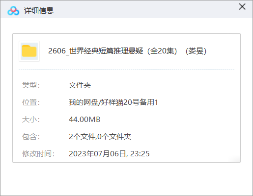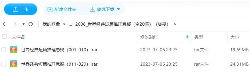 本资源为娄旻播讲《世界经典短篇推理悬疑》有声小说全20集音频打包[MP3]百度云网盘下载,本次资源格式为MP3,做压缩包处理,避免资源丢失,不要直接在网盘解压,请先保存下载再解压便可播放。