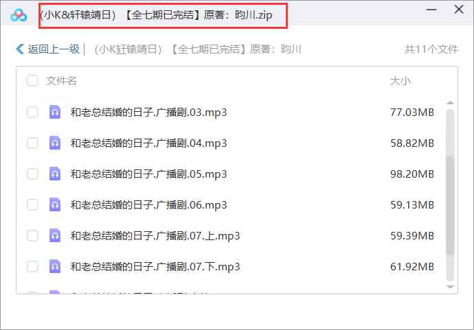 本资源为《和老总结婚的日子》广播剧完结音频打包[MP3]百度云网盘下载,本次资源格式为MP3,做压缩包处理,避免资源丢失,不要直接在网盘解压,请先保存下载再解压便可播放。