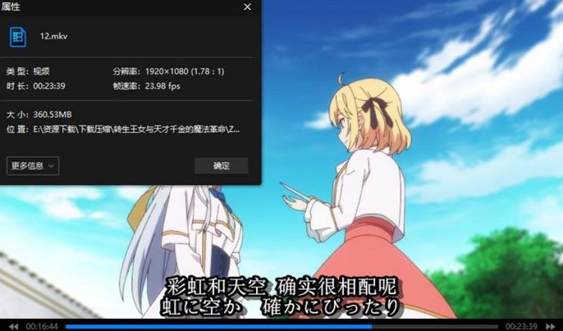 本资源为《转生王女与天才千金的魔法革命》全12集中日双字[MKV]百度云网盘下载,本次资源格式为MKV,做压缩包处理,避免资源丢失,不要直接在网盘解压,请先保存下载再解压便可播放。