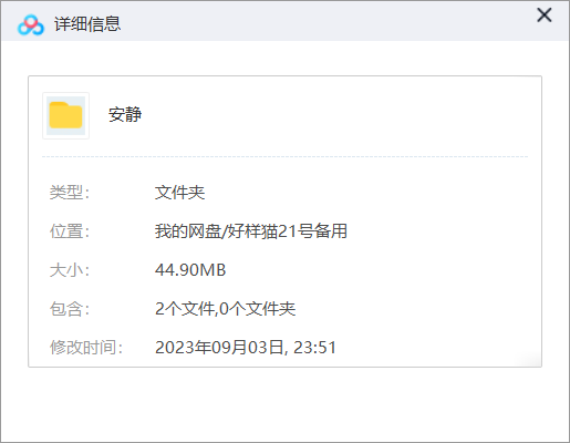 本资源为周杰伦2001年演唱歌曲《安静》无损音乐[FLAC/MP3]百度云网盘下载,本次资源格式为FLAC/MP3,做压缩包处理,避免资源丢失,不要直接在网盘解压,请先保存下载再解压便可播放。