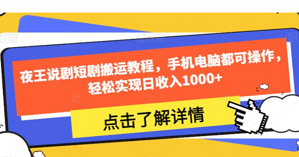 本资源为《夜王说剧短剧搬运教程》视频课程合集[MP4]百度云网盘下载,本次资源格式为MP4,做压缩包处理,避免资源丢失,不要直接在网盘解压,请先保存下载再解压便可播放。