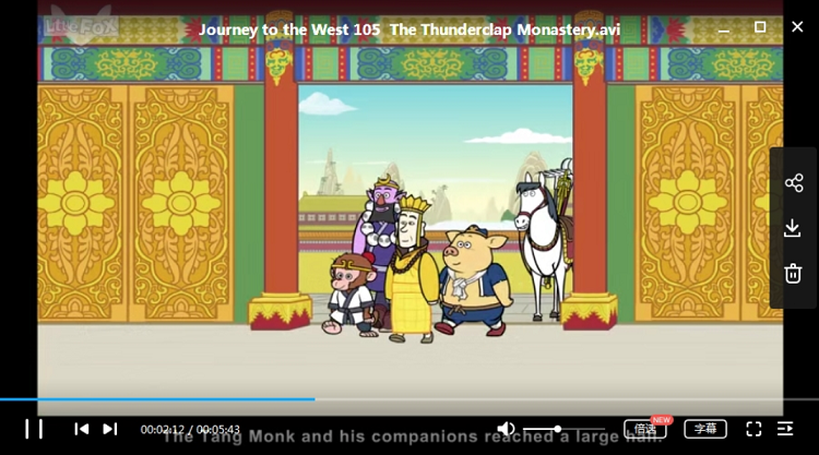 little fox出品英语卡通版的《西游记》,画风非常好,相信每个人都会喜欢。这个西游记和86版的《西游记》一样,共108个视频,一集一个故事,里面的人物都是卡通版,看着特别有趣,妖魔鬼怪也没有那么恐怖。