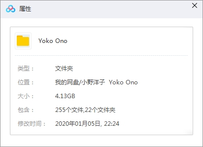 本资源为Yoko Ono/小野洋子专辑所有歌曲合集-13张发烧专辑CD(1968-2010)无损音乐+部分视频合集[MP3+AVI/4.13GB]百度云网盘下载,一共包含13张CD歌曲+部分视频文件,歌曲格式为MP3,视频格式为AVI,做压缩包处理,需要会员下载解压便可播放试听。