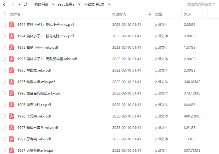本资源为郝劭文释小龙1994-2018年合演的16部电影中文字幕超清合集[TS/MKV]百度云网盘下载,本次资源格式为TS+MKV,做压缩包处理,避免资源丢失,请先保存下载再解压便可播放。(保存到自己的网盘后,重命名文件,后缀去掉 .pdf 即可播放)