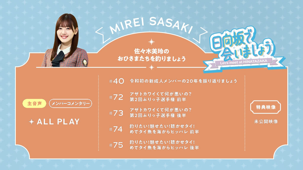 洋題:LET`S MEET AT HINATAZAKA SASAKI MIREI NO OHISAMA TACHI WO TSURIMASHOU