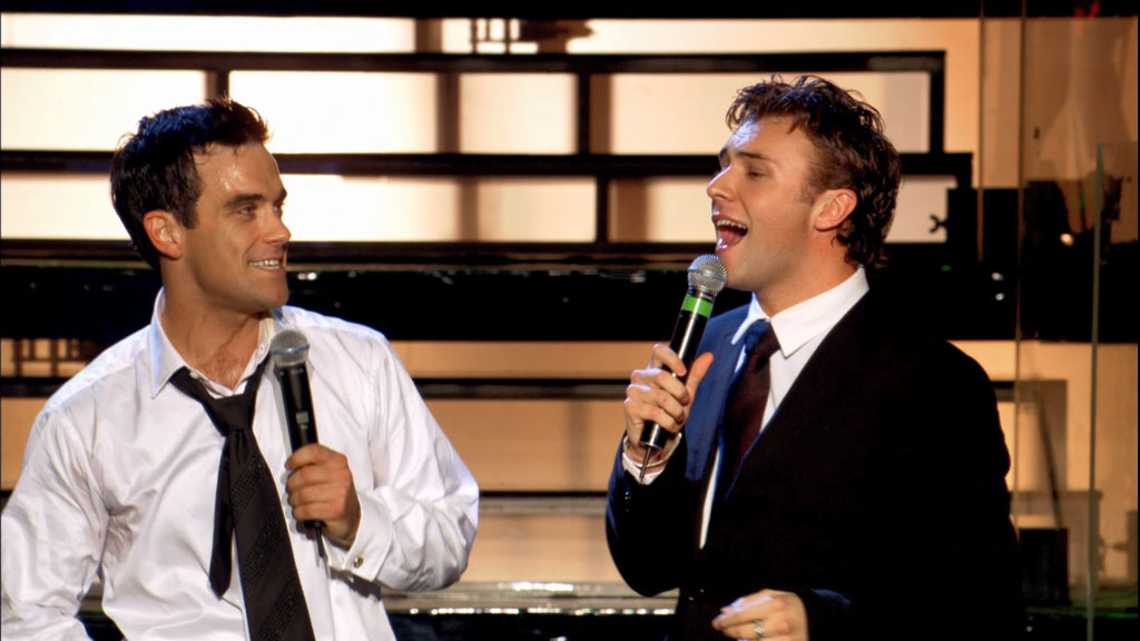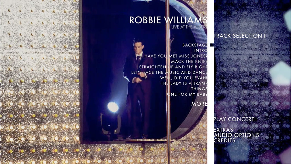 LIVE AT THE ALBERT, recorded in October 2001, features pop singer extraordinaire Robbie Williams performing tunes from his SWING WHEN YOU’RE WINNING album, backed by a 58-piece orchestra. Songs include “The Lady Is a Tramp,” “Things” (featuring songbird and actress Jane Horrocks), “Well, Did You Evah” (featuring comedian Jon Lovitz), “It Was a Very Good Year,” and “My Way.” (Nicole Kidman, who recorded the duet “Somethin’ Stupid” was originally slated to perform the song with the Ego, but she declined at the last minute due to nervousness). Witness Robbie in all his swinging, swaggering glory on this release, which also contains backstage footage and more.