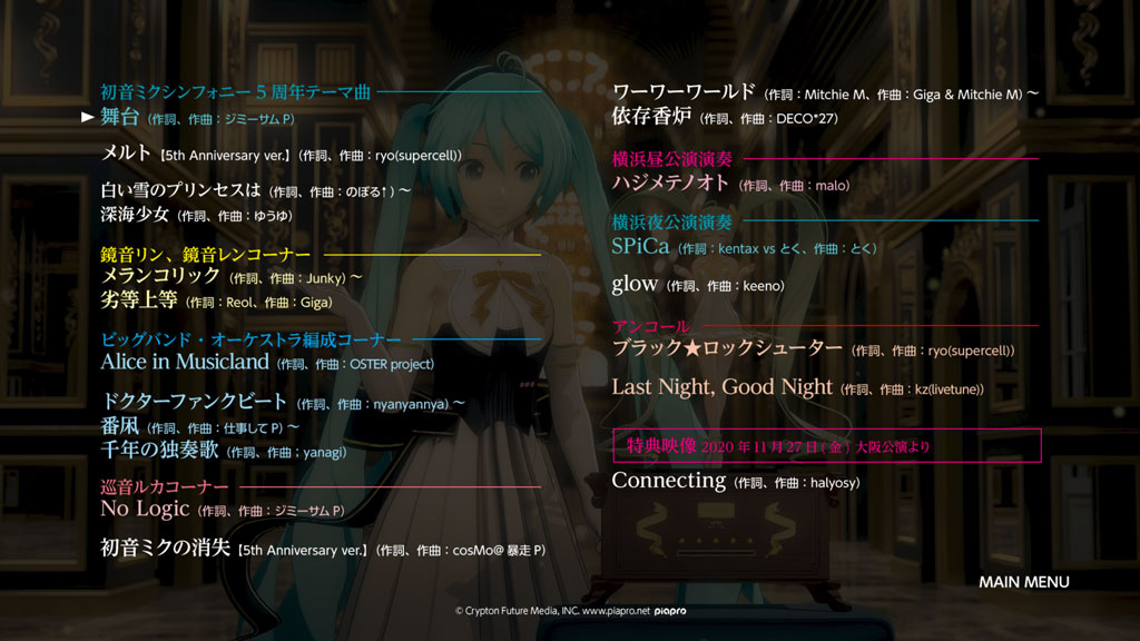 M1.【初音ミクシンフォニー5周年テーマ曲】舞台
