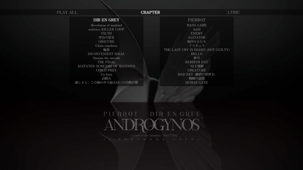 PIERROTXDIRENGREY-ANDROGYNOS2017[BDISO3BD100GB] 演唱会MV下载