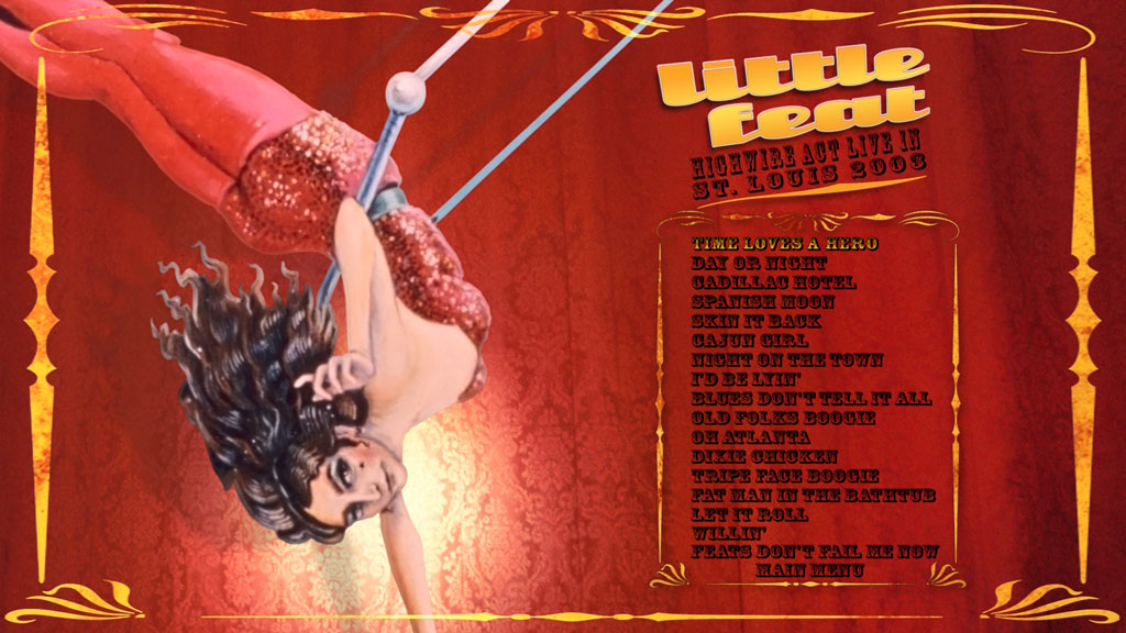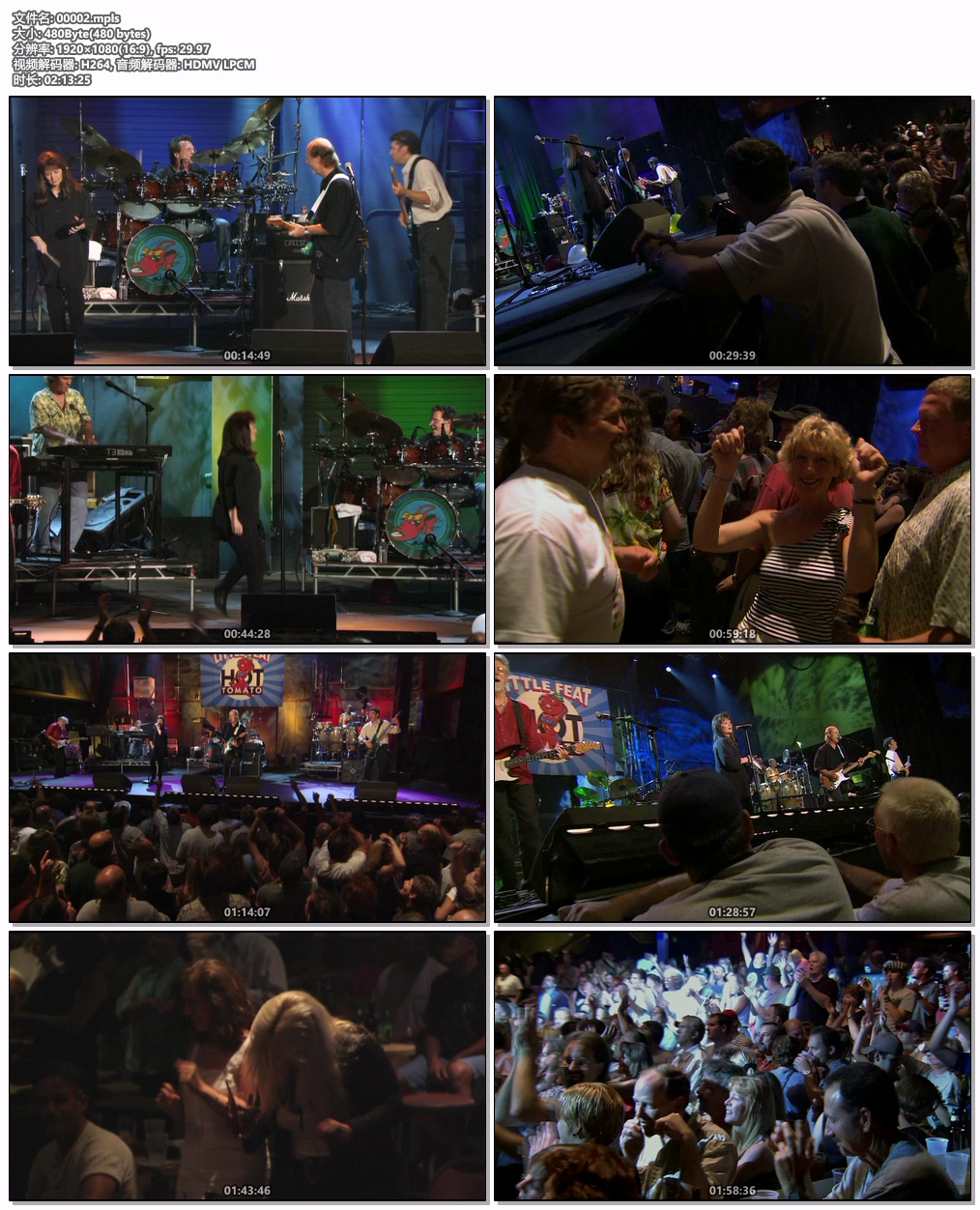 About: Recorded in August 2003 at the Pageant in St. Louis, Missouri, Little Feat perform a career-spanning set including a couple from their (at the time) soon-to-be-released album, Kickin’ It At The Barn. The band is comprised of Paul Barrere (guitars, vocals), Sam Clayton (percussion, vocals), Kenny Gradney (bass), Richie Hayward (drums, vocals), Bill Payne (keyboards, vocals), Fred Tackett (guitar, trumpet) and Shaun Murphy (vocals, percussion).