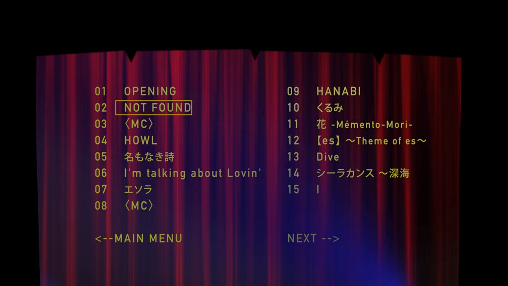 ■本作は、ライブ映像作品という点において、彼らが音楽に傾けるエネルギーの総量の全てを過去最大級に集約する事に成功している。初映像化となる「蒼」「ハル」の他、ALBUM「SENSE」収録以外では「未来」「innocent world」「Replay」「君が好き」「Mirror」「CENTER OF UNIVERSE」「ニシエヒガシエ」「Everything is made from a dream」「星になれたら」「Tomorrow never knows」「終わりなき旅」他数々の名曲を収録。全26 曲収録予定。